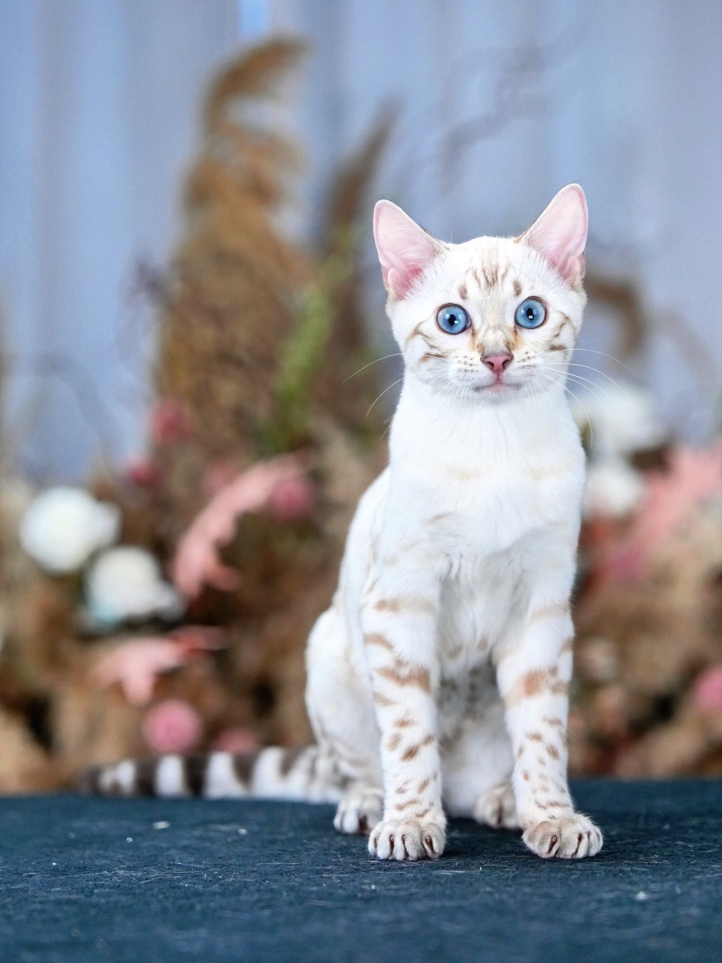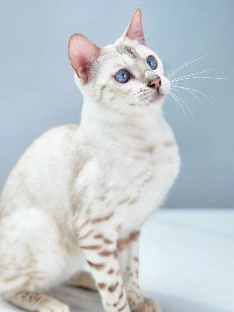 雪豹猫,目前市面上最火爆的一个色系,分为三个色系,山猫色,水貂色,乌贼色。由于雪豹秀气又甜美白净,特别是山猫色的独特蓝眼睛,仙气飘飘,像极了天使公主,吸引了大批爱好者。